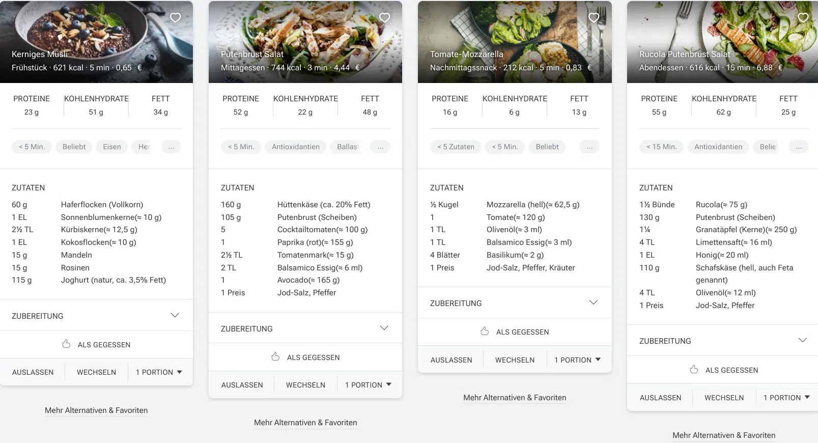 Der Pragmatismus! Ich muss nicht lange überlegen, sondern bekomme fertige Pläne, die ich individuell anpassen kann. Die Möglichkeit, bestimmte Lebensmittel auszuschließen, ist für mich ein großer Pluspunkt.